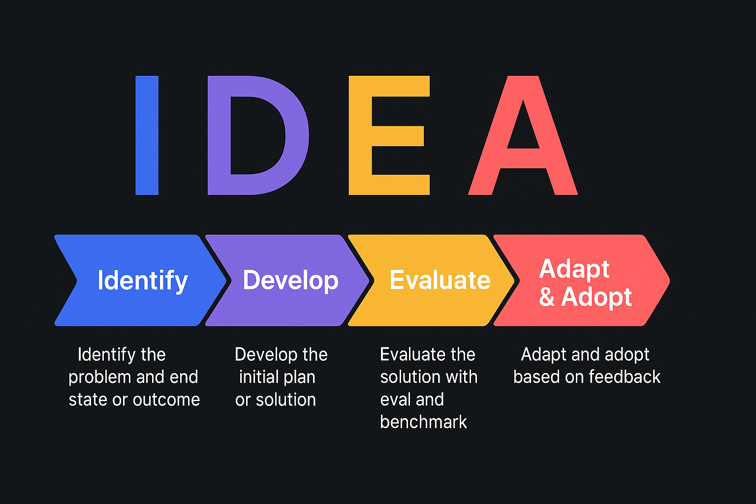 A repeatable workflow that de-risks AI investment. Each loop validates assumptions, captures evidence, and informs the next build.